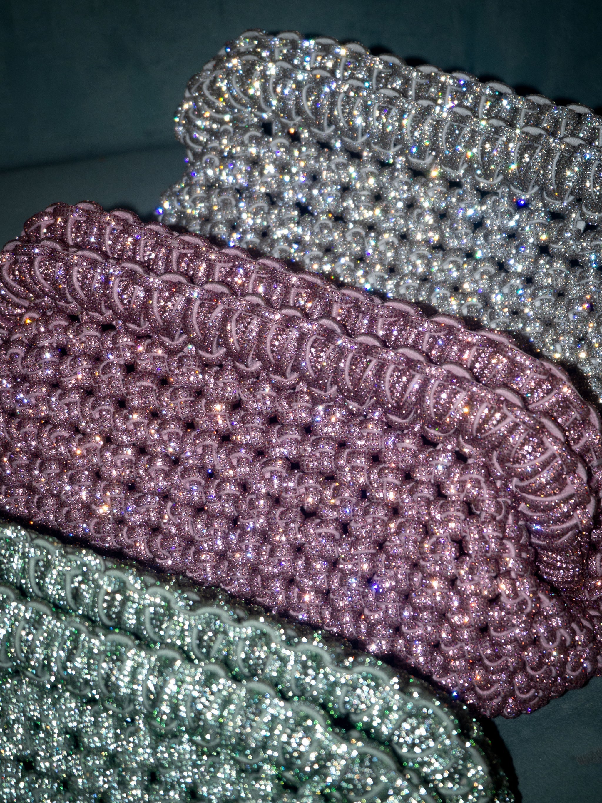 The new jewel clutch is this season’s must-have accessory. Entirely handmade, it features an elegant and chic design, making it perfect to shine at any occasion.