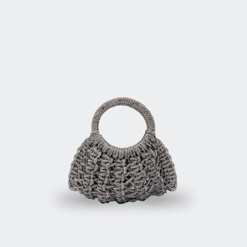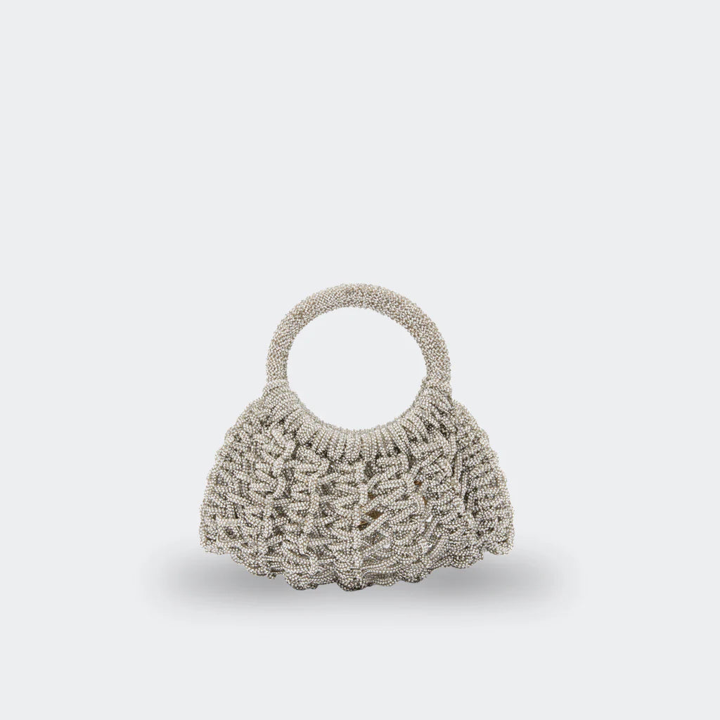 The Mary T mini jewel bag, is the season's new must-have accessory. Handmade, it mixes craftsmanship and ultra chic design. Its soft shape and sparkling crystals make it perfect for shining on any special occasion.