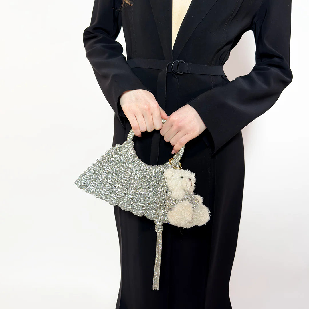 The Mary T jewel bag, is the season's new must-have accessory. Handmade, it mixes craftsmanship and ultra chic design. Its soft shape and sparkling crystals make it perfect for shining on any special occasion.