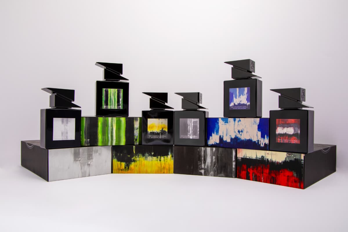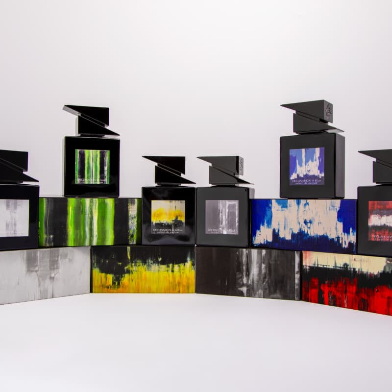 DECLINATION nasce dall’incontro tra la pittura astratta monocromatica e l’universo della profumeria artistica. Come un artista che oltrepassa i confini dei materiali tradizionali, Codice Olfattivo sperimenta nuove forme di espressione traducendo il colore in note olfattive.