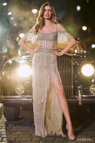 Abito da ballo in tulle con volant e paillettes in pizzo con corpetto a corsetto trasparente, scollo a cuore, spalline scoperte e allacciatura sul retro.