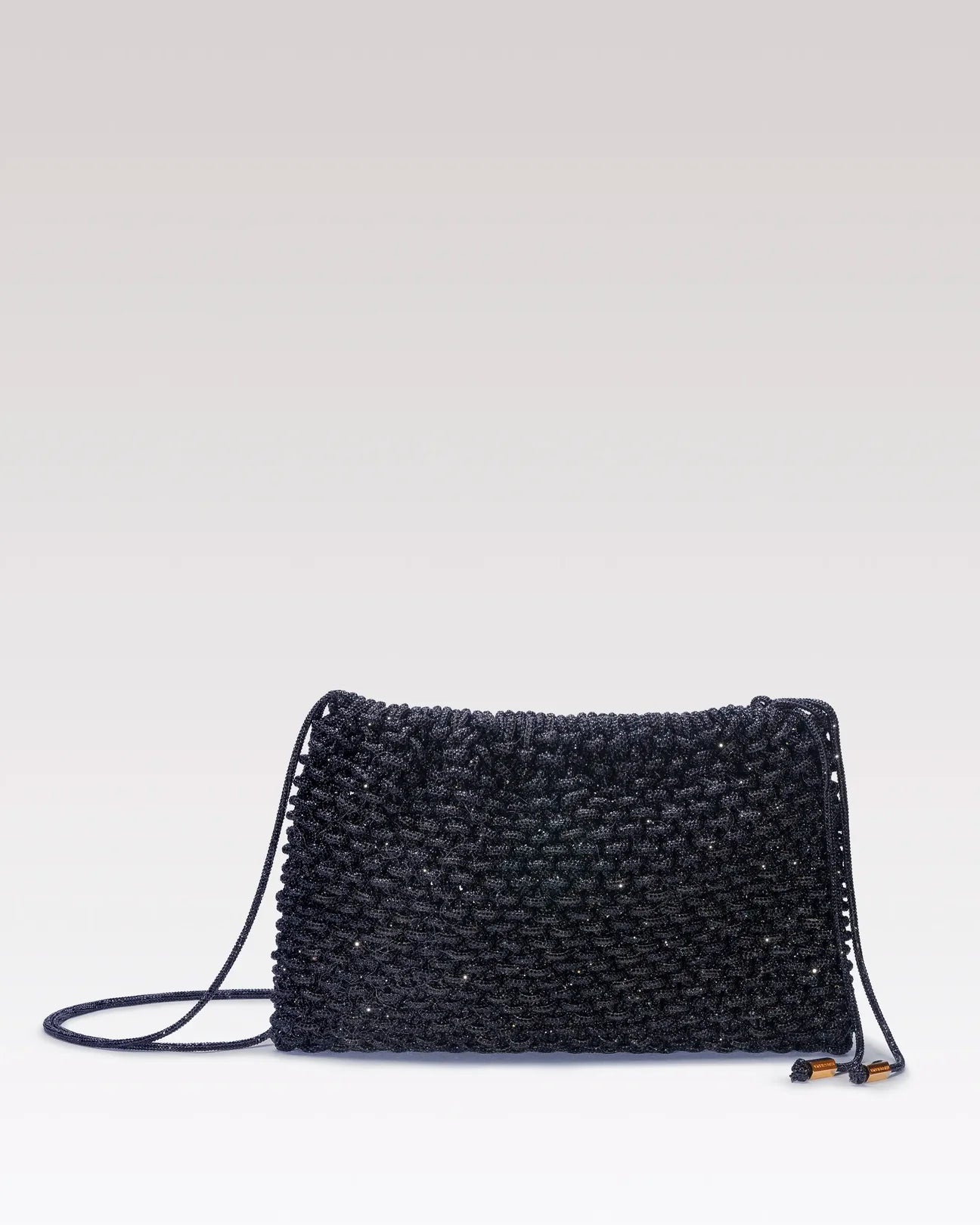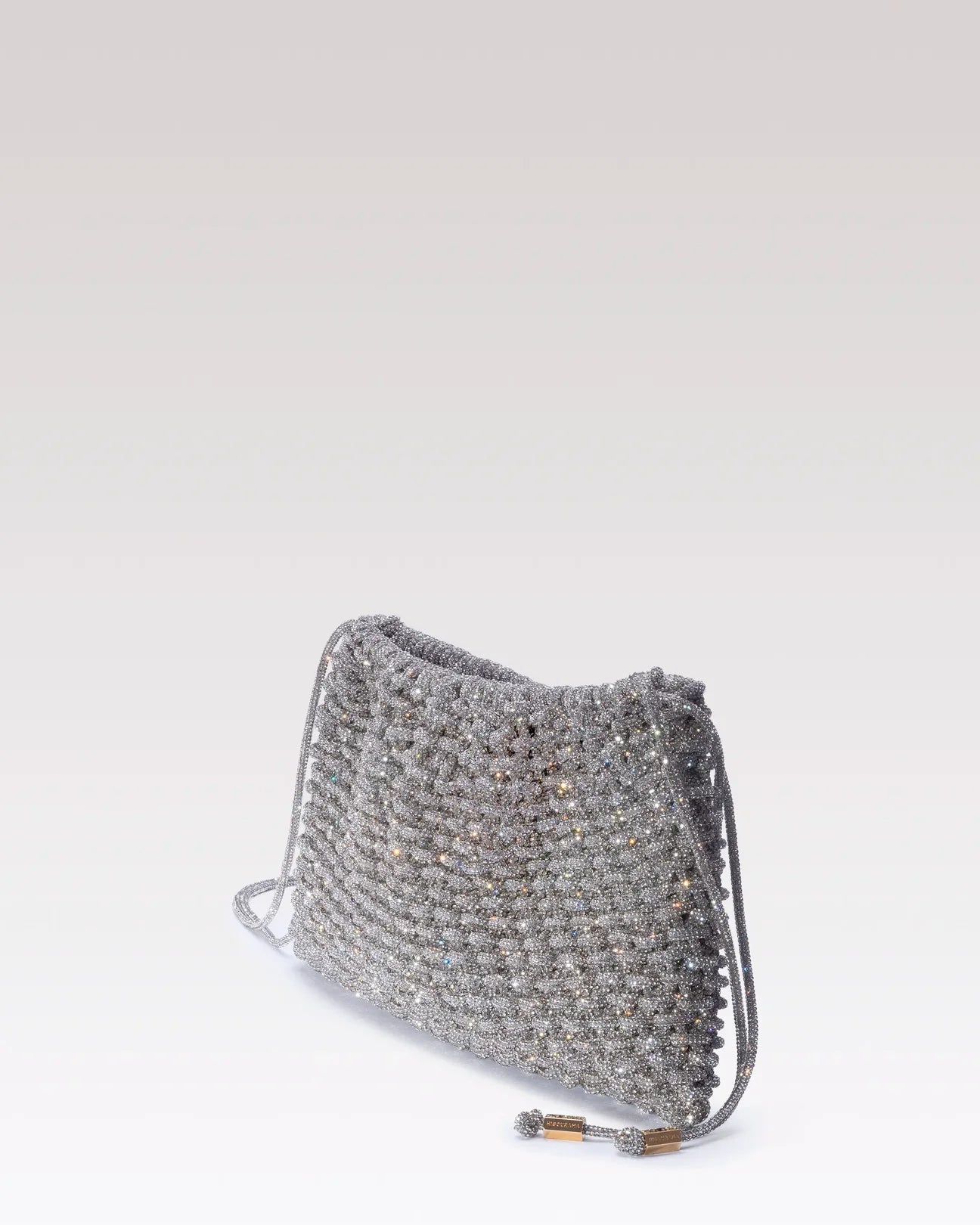 A contemporary classic with clean, bright lines. Handcrafted with woven yarns covered in crystals, Penelope combines softness and structure in a compact, versatile silhouette. The side straps with gold metal details allow you to carry it by hand or on your shoulder, adding a sophisticated touch to your party looks.